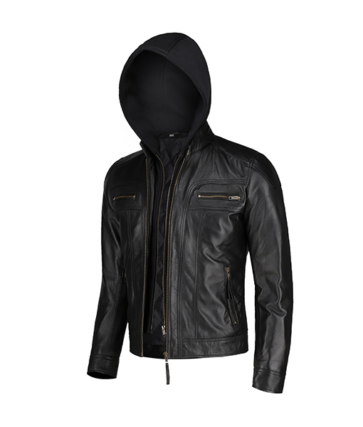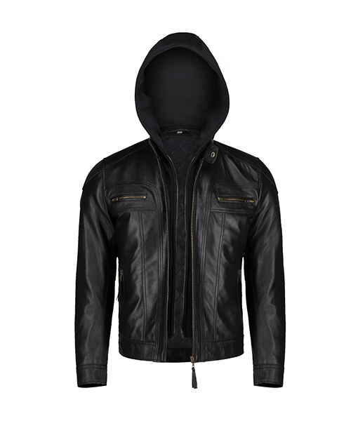 Mens Black Slim Fit Leather Jacket With Hood