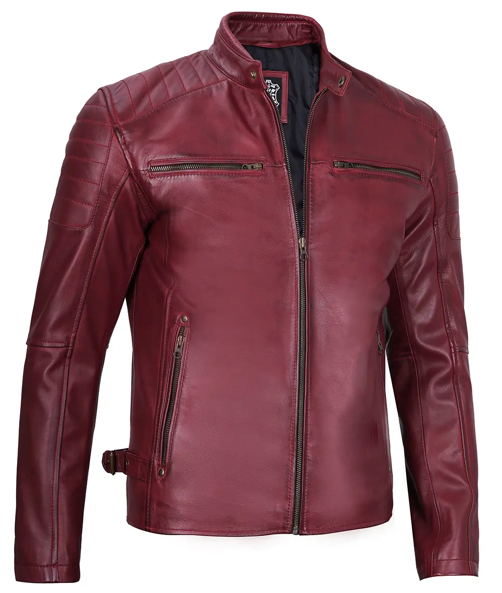 Waxed Maroon Cafe Racer Leather Jacket for Men