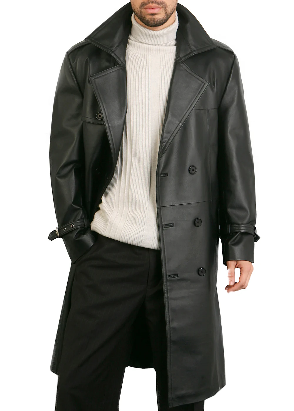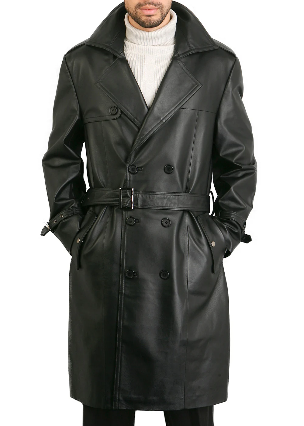 I’m a big fan of trench-style coats and this one hit the mark. The fit is clean, the leather feels durable, and the belted design adds a sleek touch. Great addition to my wardrobe.