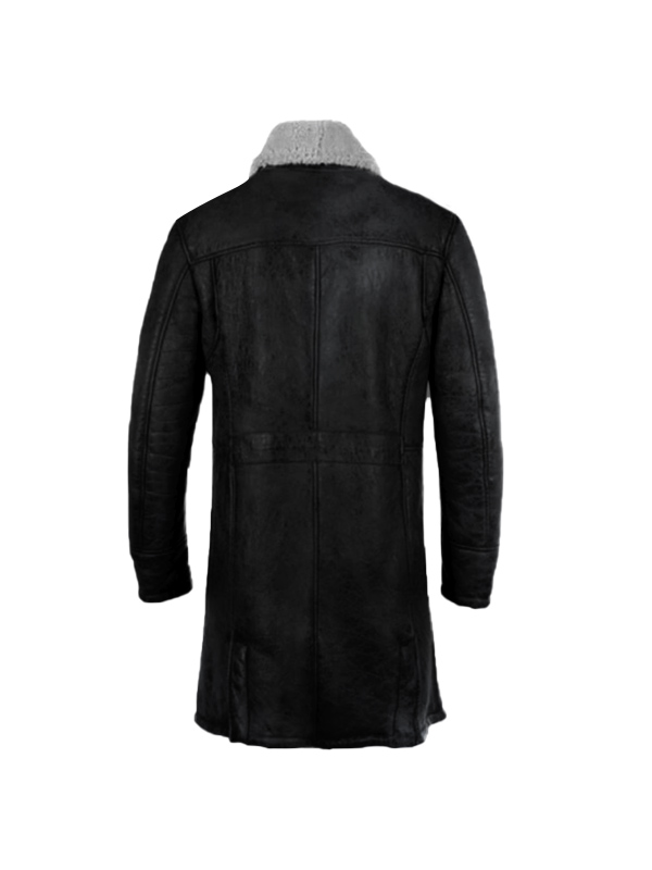 Men Black And Grey Shearling Leather Coat