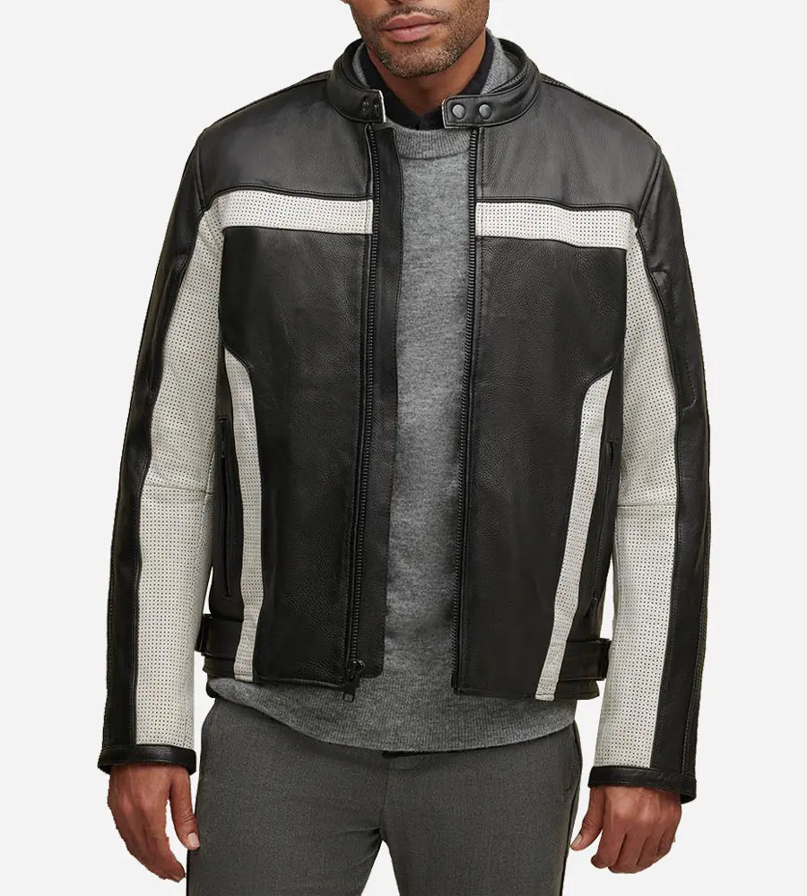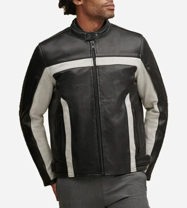 Men Black Genuine Leather Cafe Racer Jacket