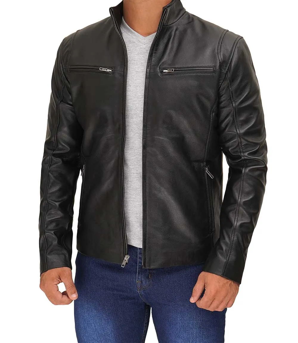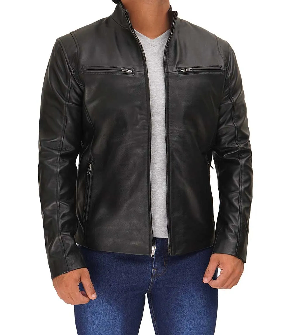 Men Black Tall Cafe Racer Leather Jacket