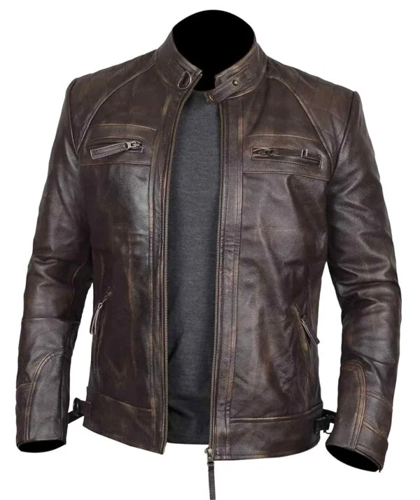 Men Brown Cowhide Cafe Racer Leather Jacket