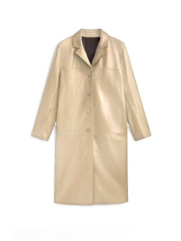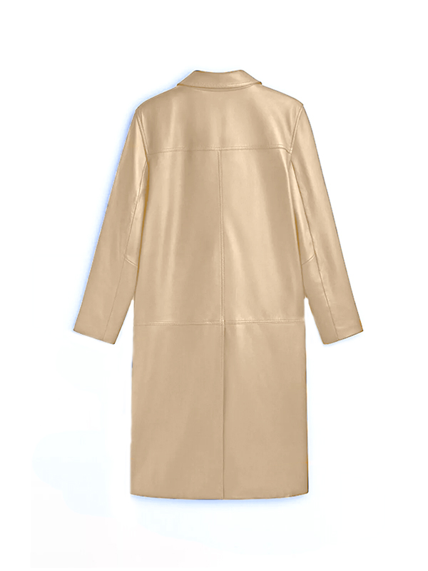 Men Classic Beige Leather Long Coat