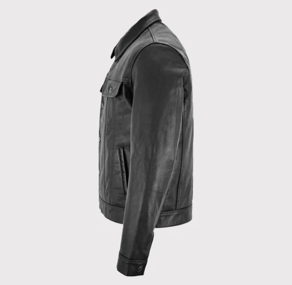 Men Classic Black Trucker Western Leather Jacket