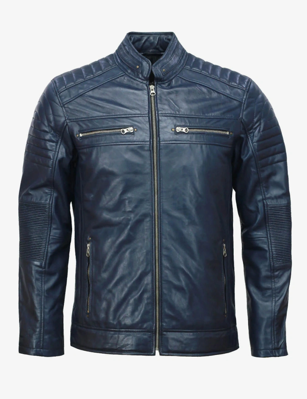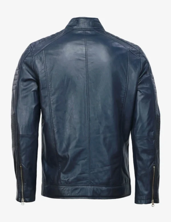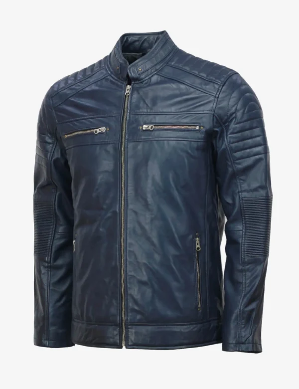 Men Midnight Blue Cafe Racer Full zippered Leather Jacket