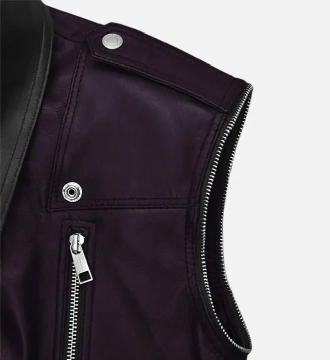 I wanted something different from the usual biker gear, and this vest nailed it. The leather feels strong but flexible, and the purple looks even better in sunlight. Definitely a unique piece.
