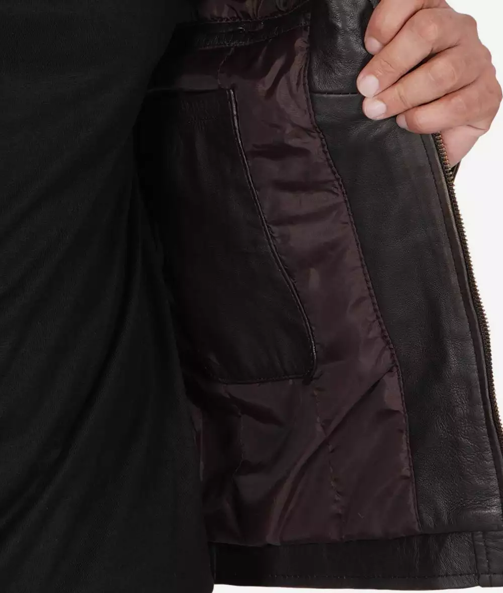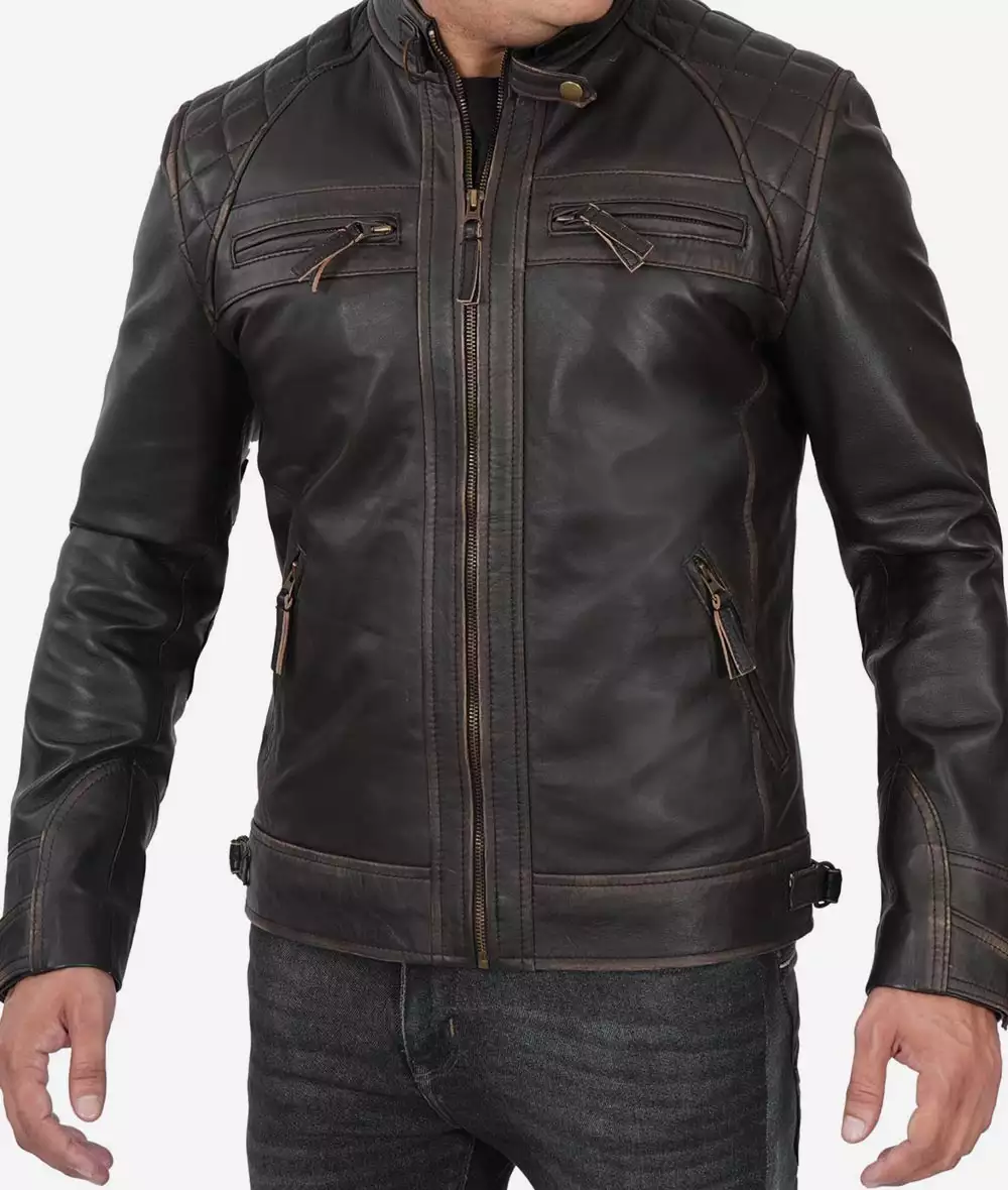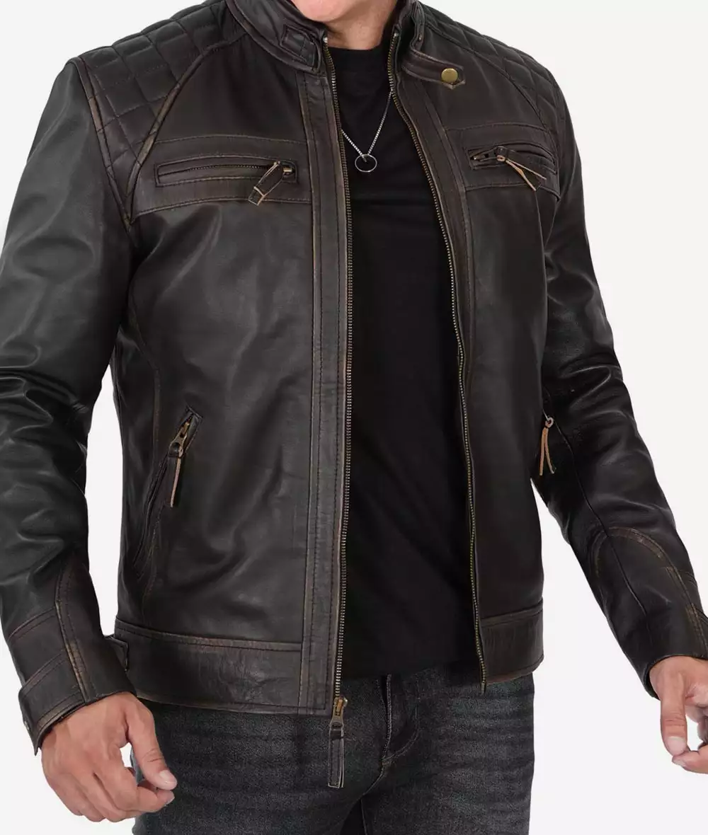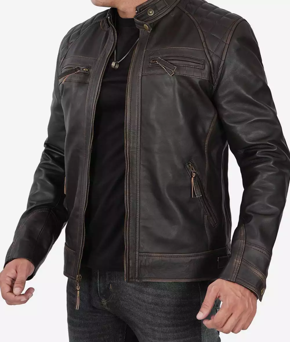 Men Tall Quilted Distressed Brown Leather Jacket