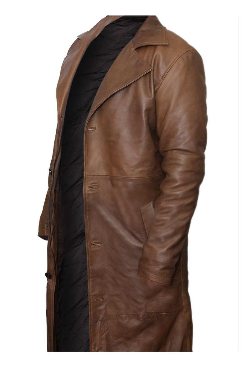 Men Waxed Brown Leather Trench Coat