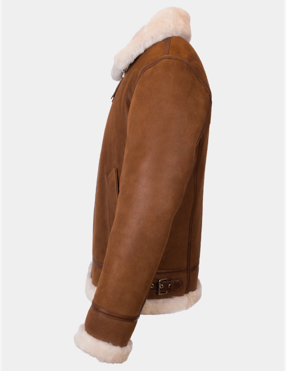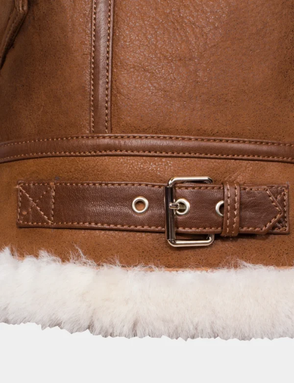 Men Wooden Brown Aviator Shearling Leather Jacket