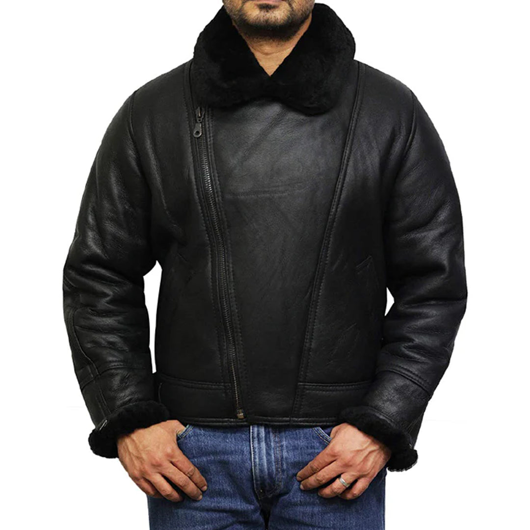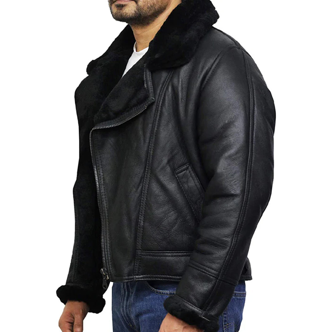 Mens Aviator Pilot B3 Shearling Leather Bomber Jacket