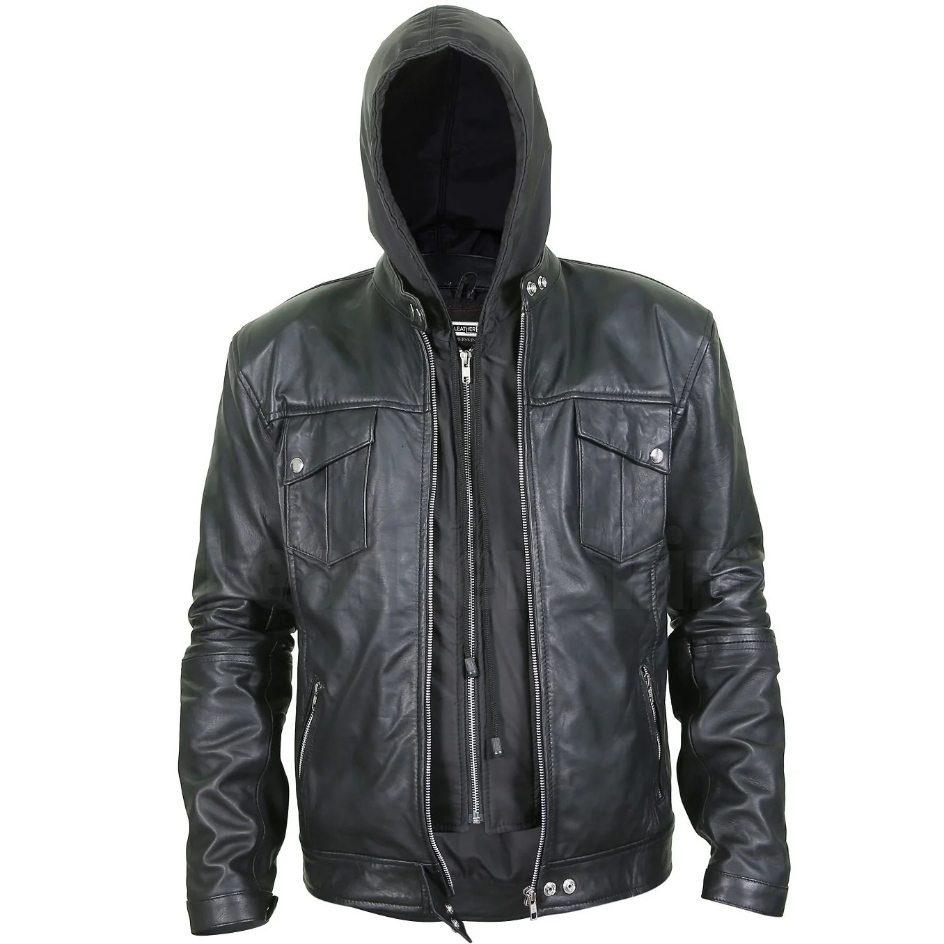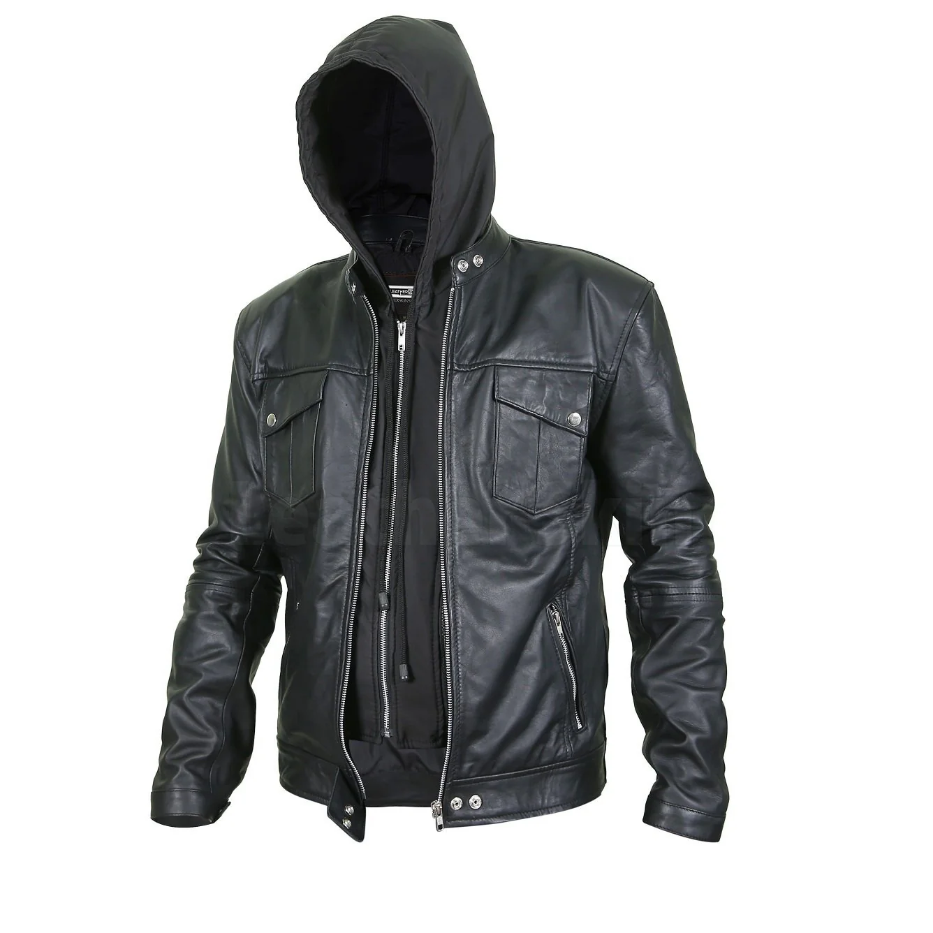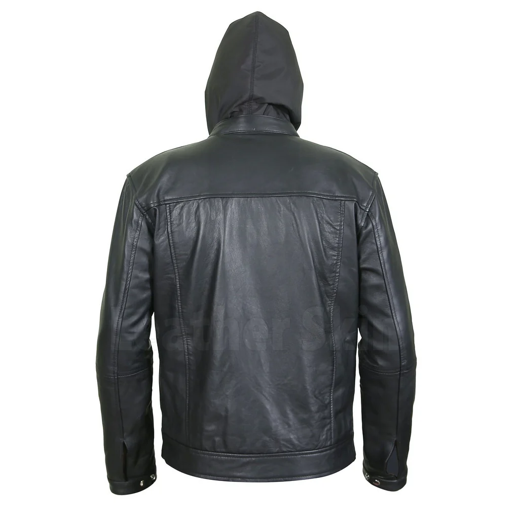 Mens Black Hoodie Leather Jacket