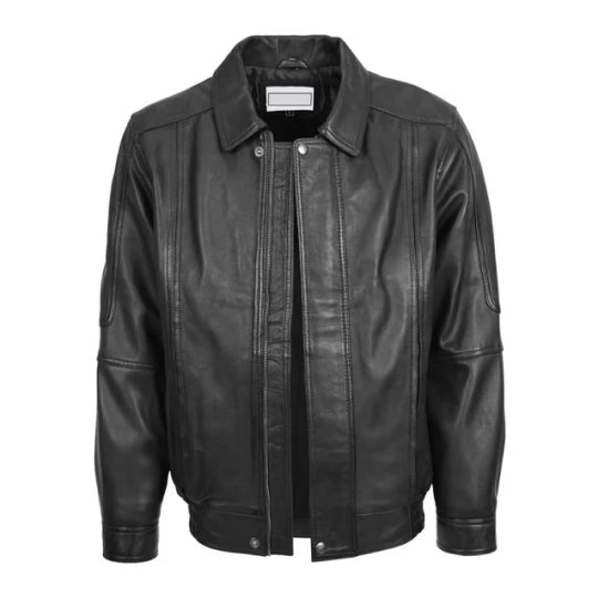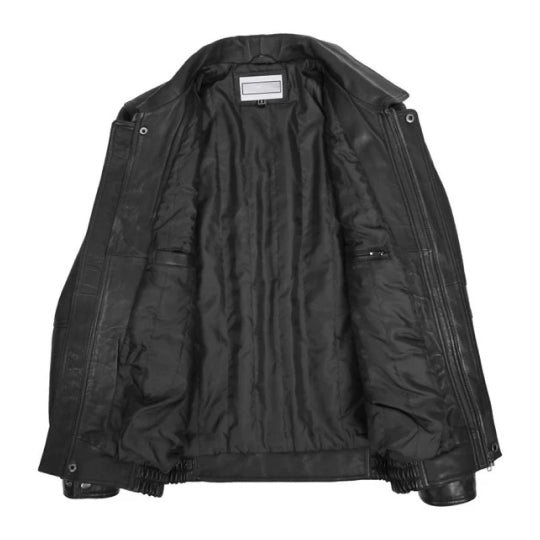 Mens Black Mirage Leather Bomber Jacket