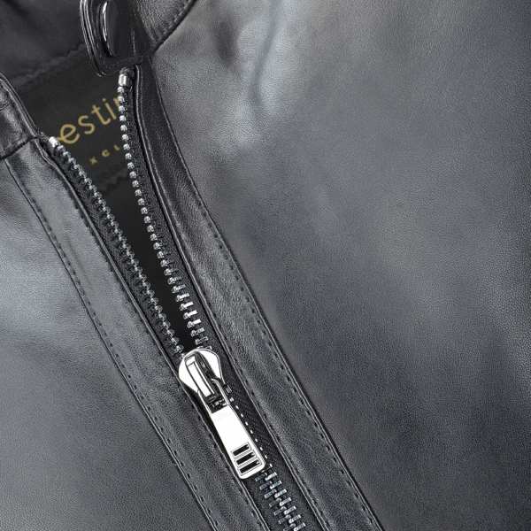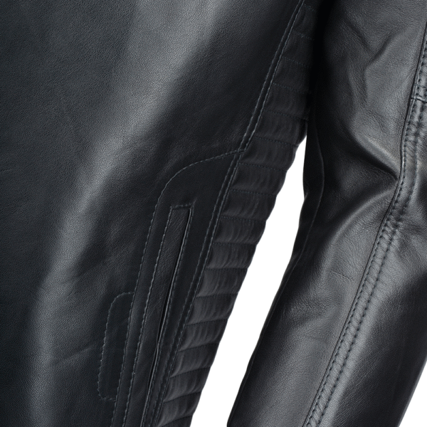 Mens Black Tanned Leather Ribbed Biker Jacket