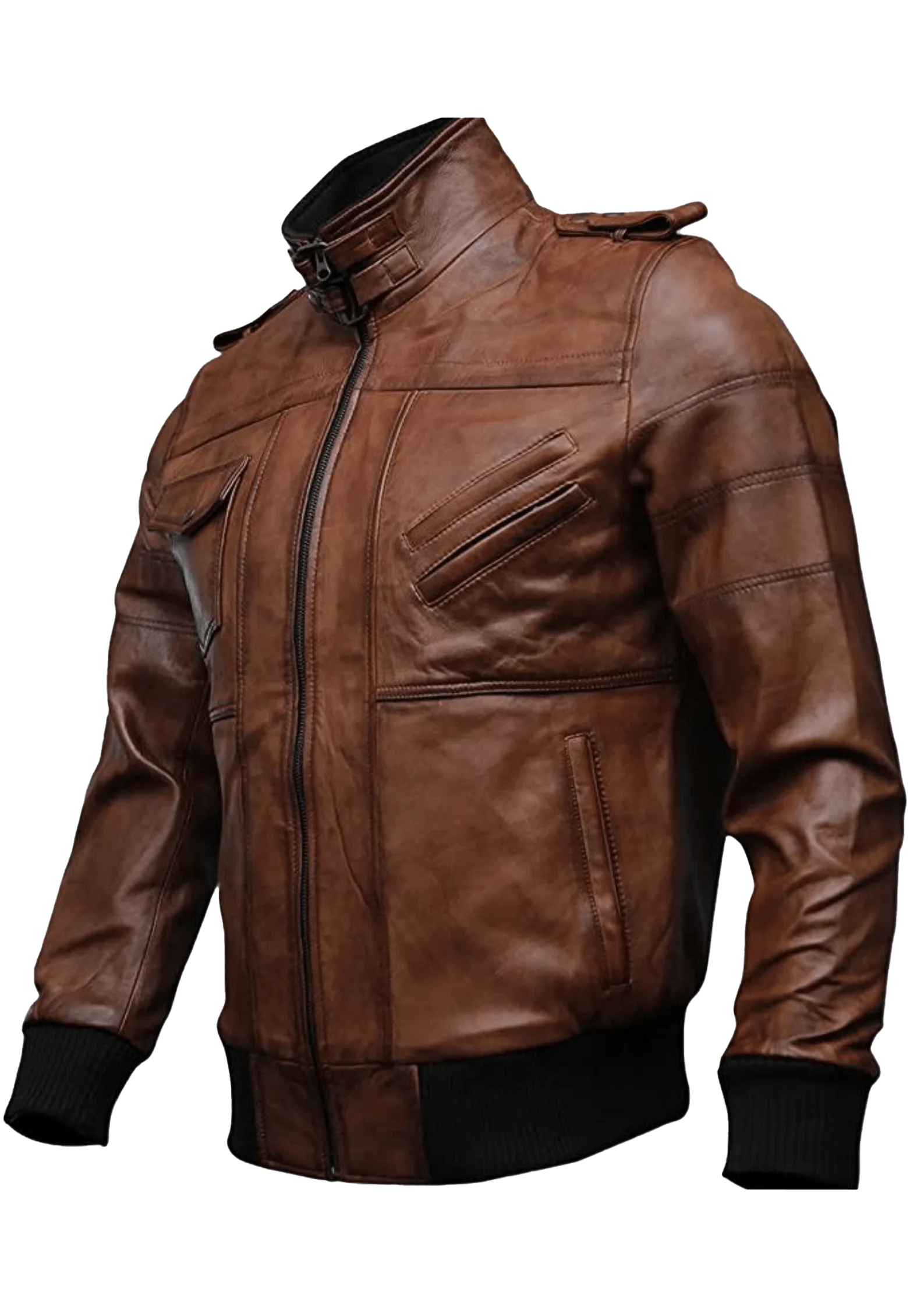 Mens Brown Hooded Bomber Leather Jacket
