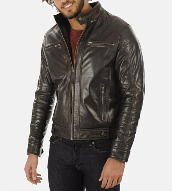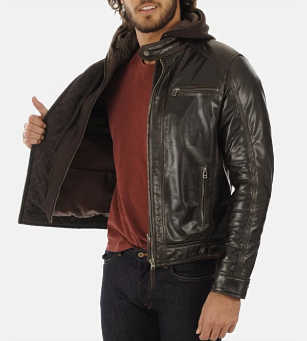 Mens Brown Hooded Buffalo Leather Jacket