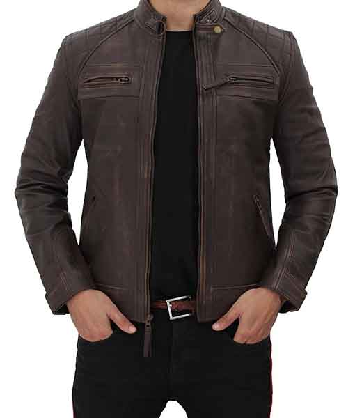 Men’s Four Pocket Brown Leather Biker Jacket