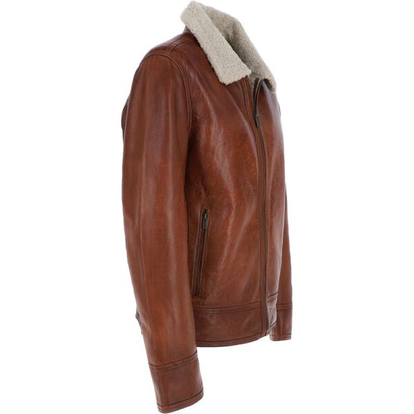 Mens Cognac Brown Teddy Lining Leather Jacket