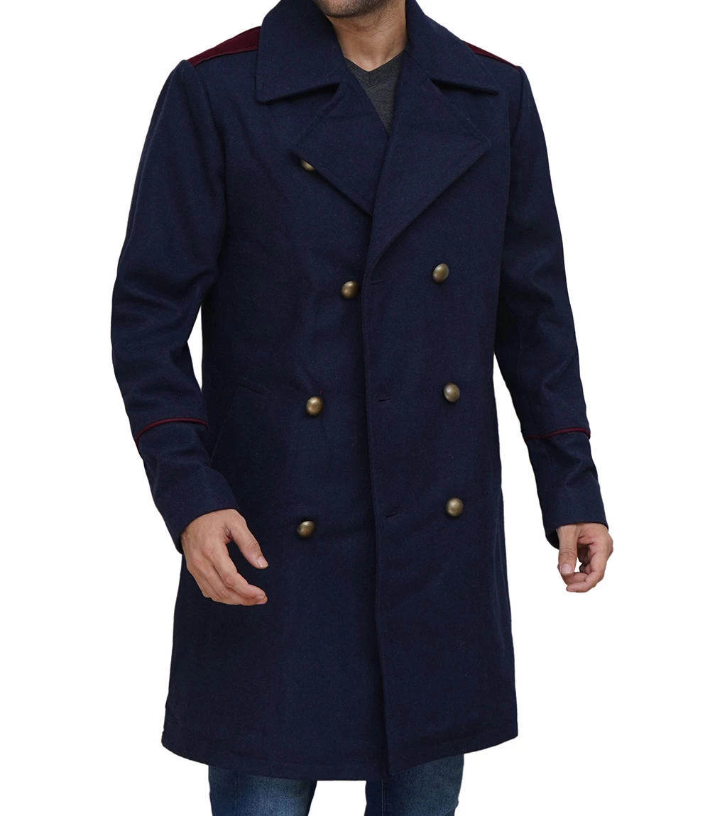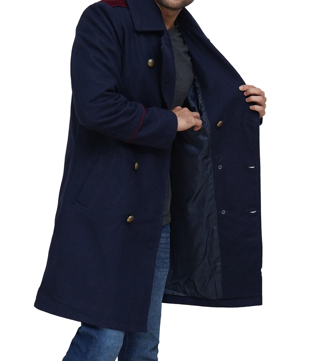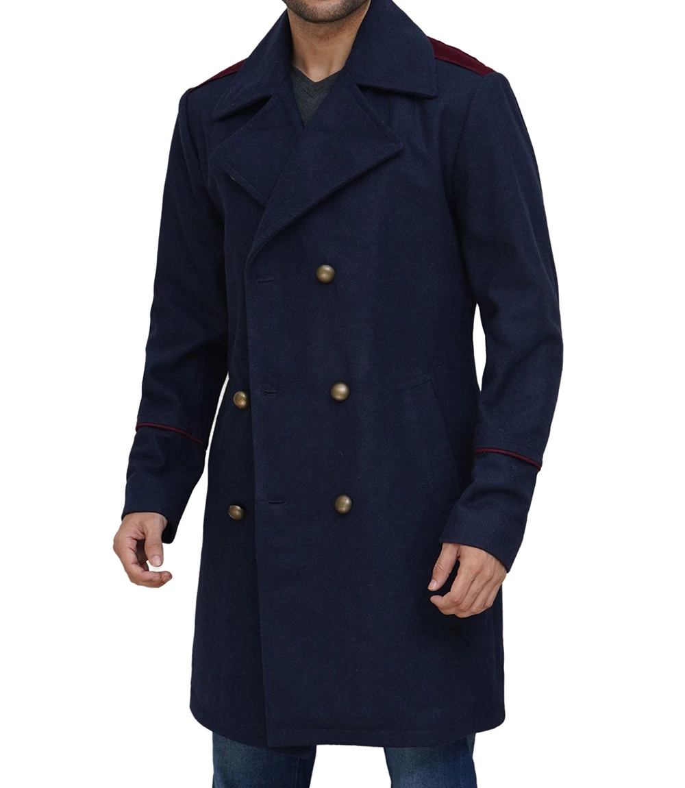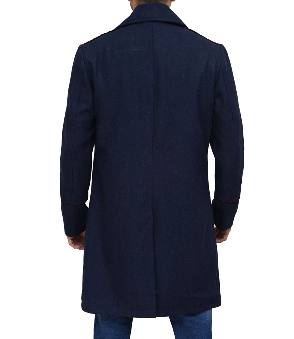 Mens Double Breasted Blue Wool Peacoat