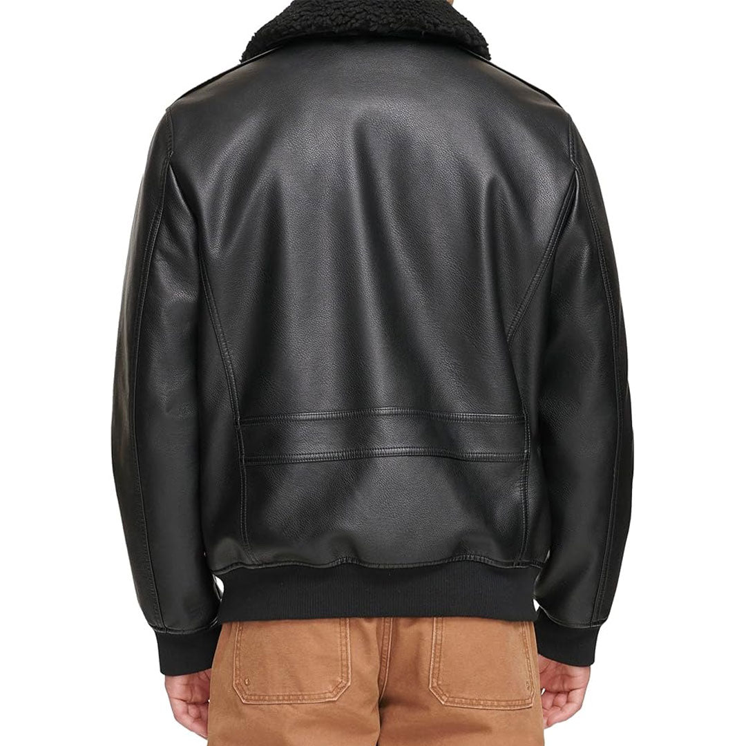 Mens Faux Sherpa Collar Bomber Leather Jacket