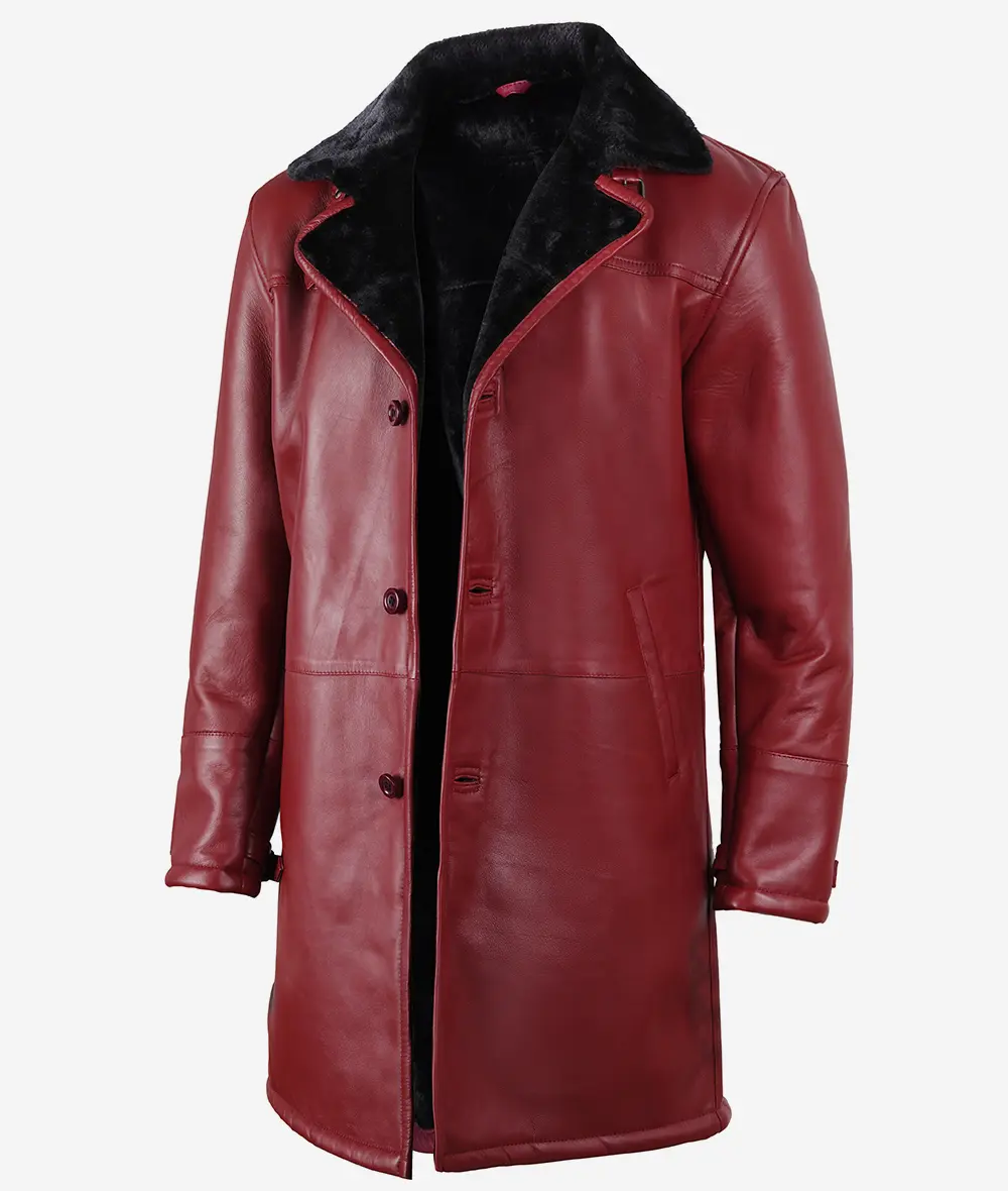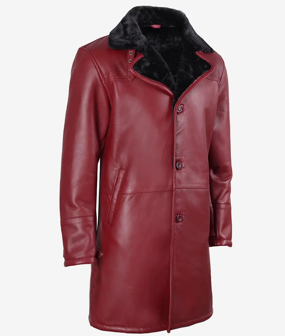 Mens Maroon Shearling Leather Fur Coat