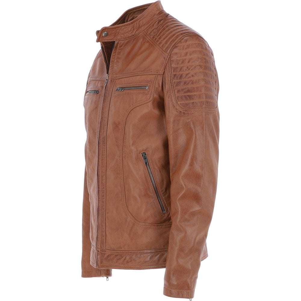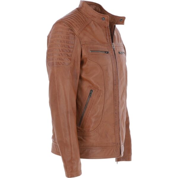 Mens Moto Durable Tan Leather Jacket