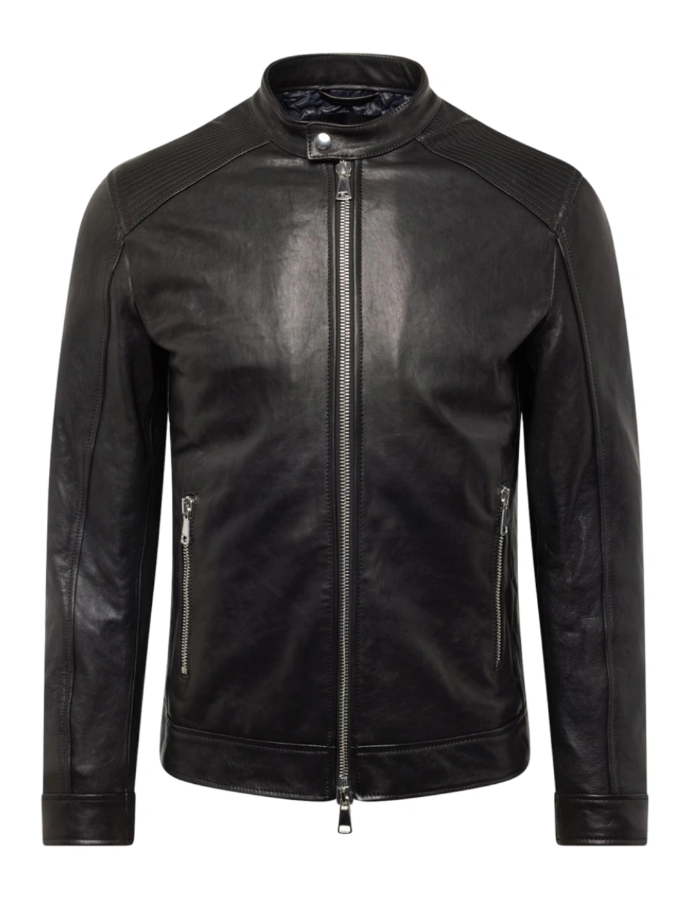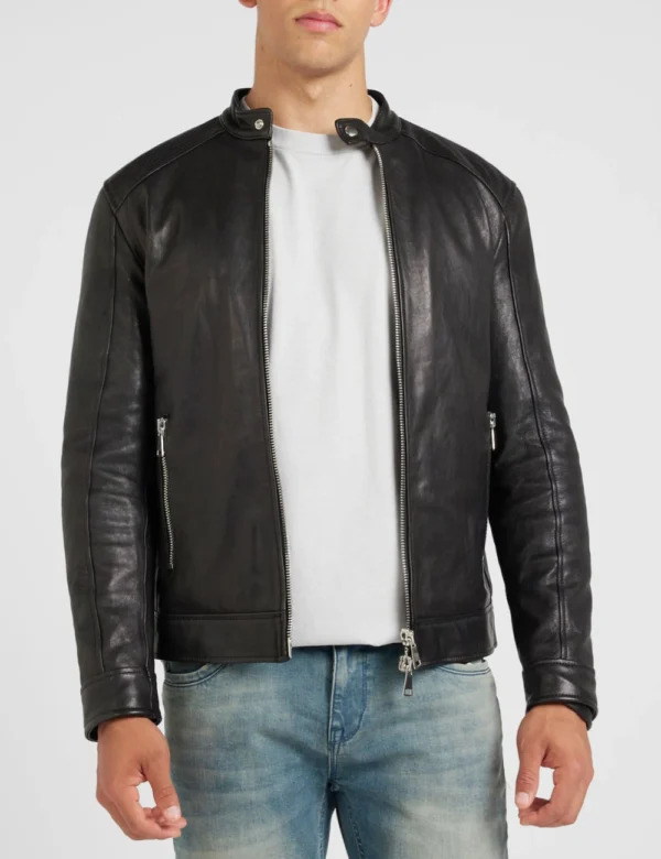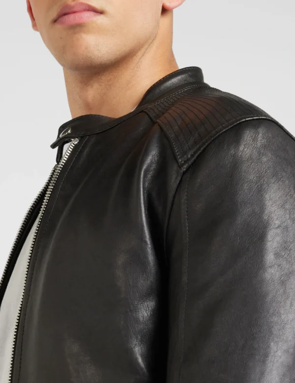 Mens Real Leather Classic Black Cafe Racer Jacket