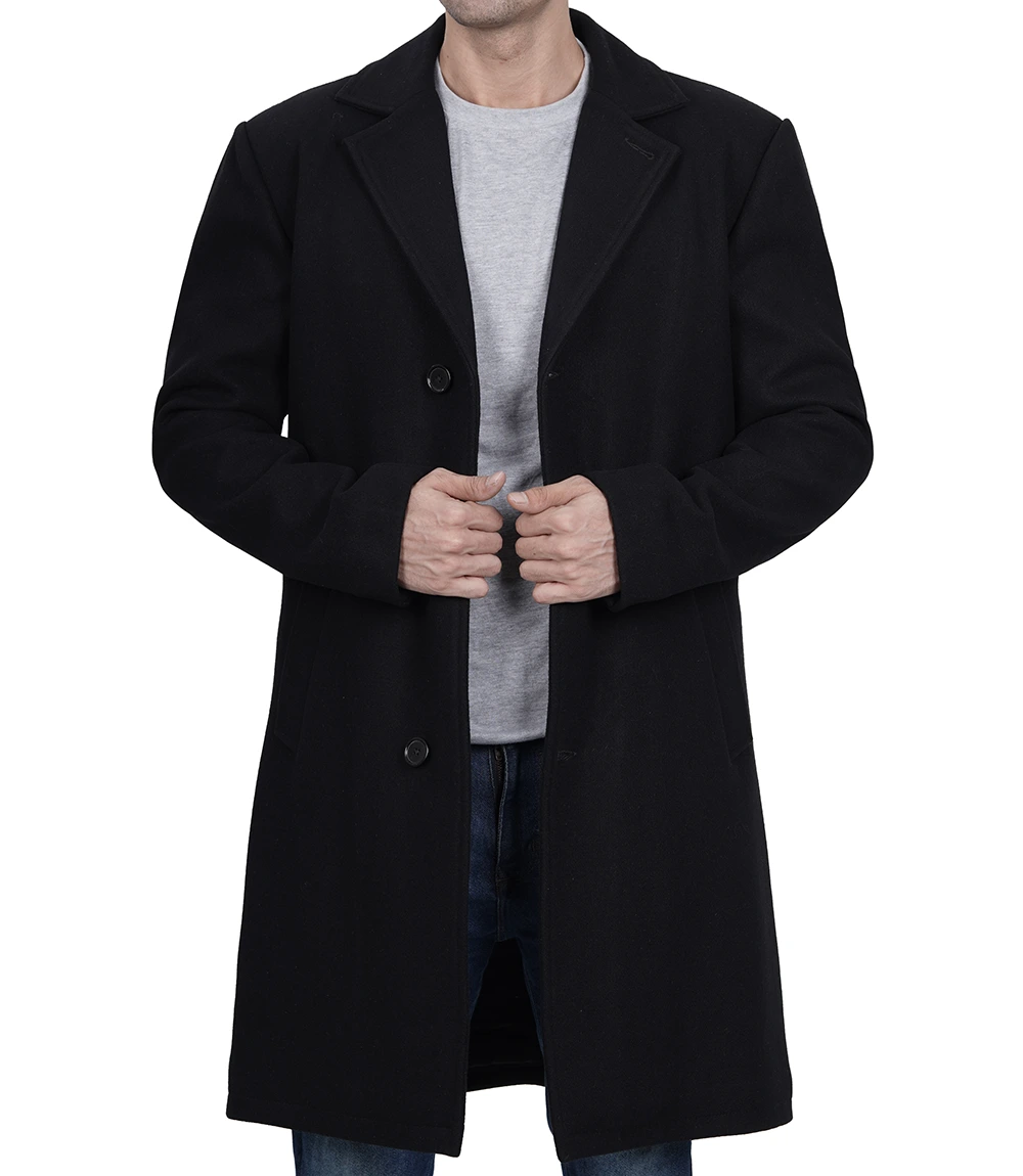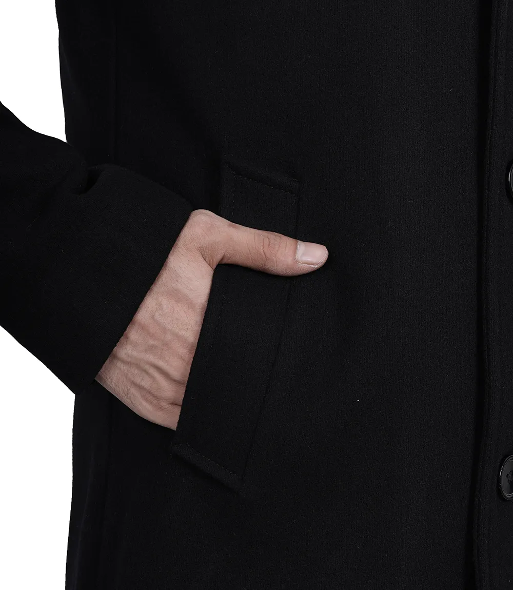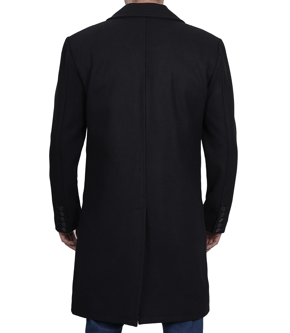 Mens Single Breasted Black Wool Coat - Modern Fit
