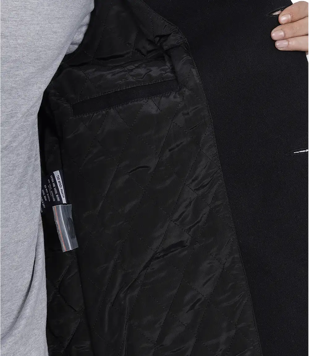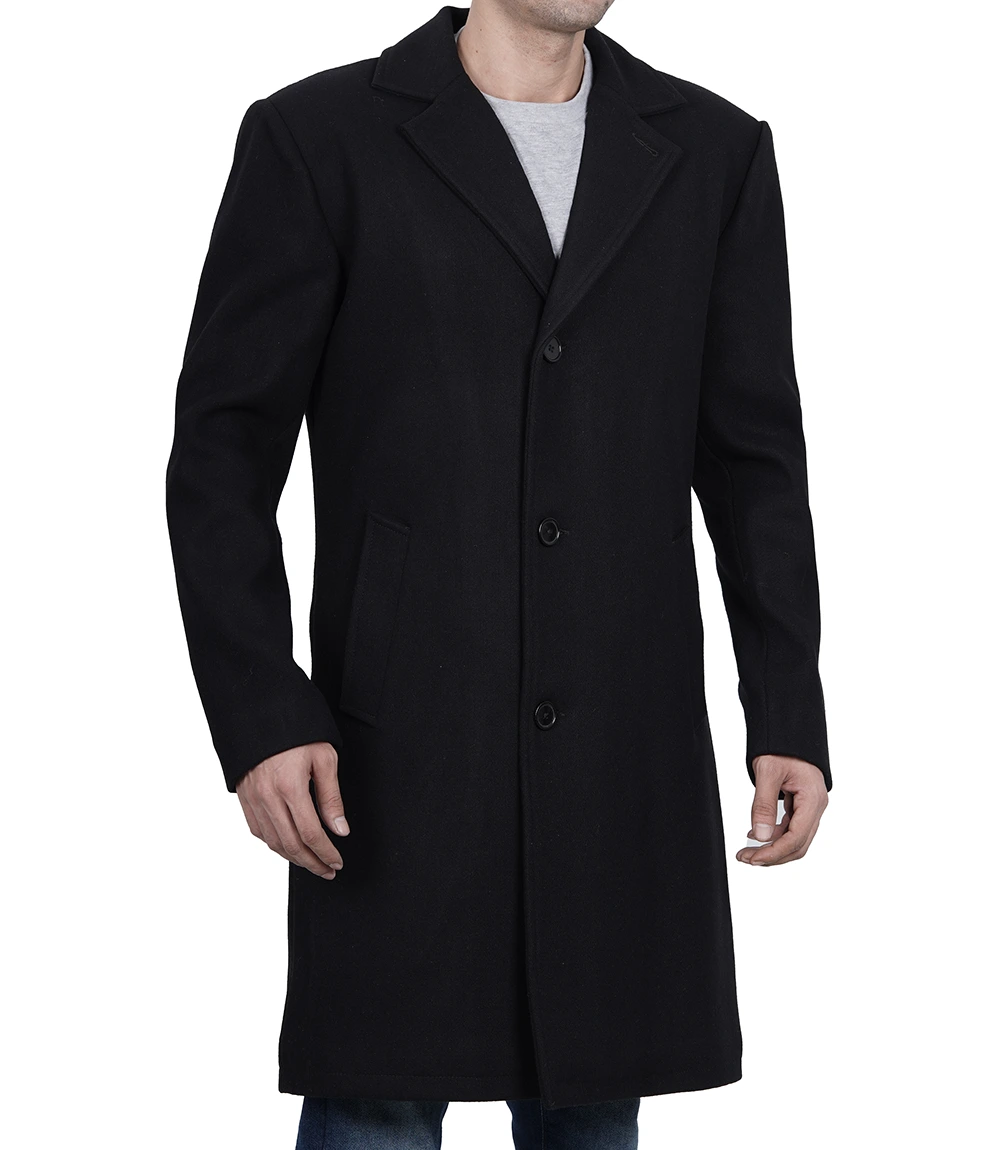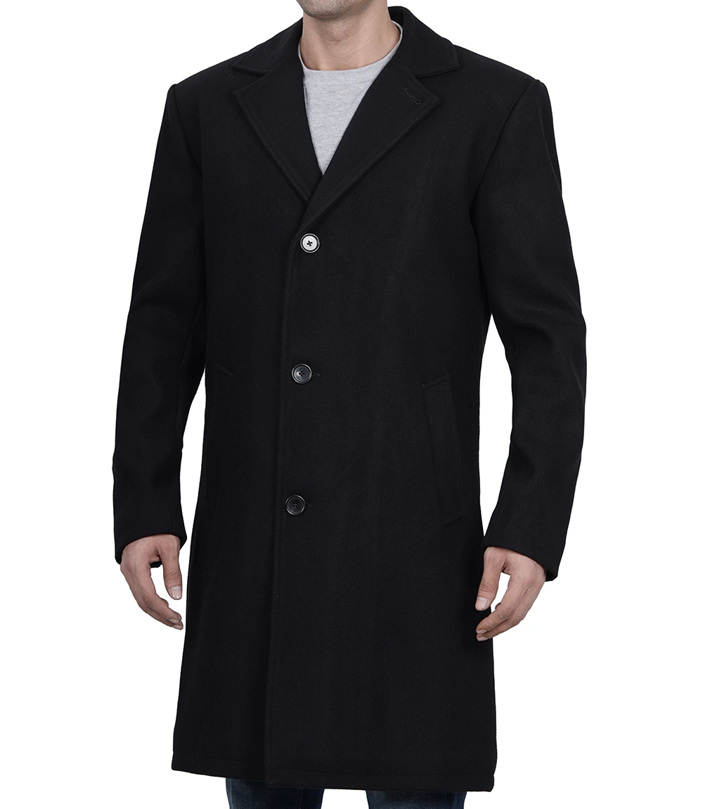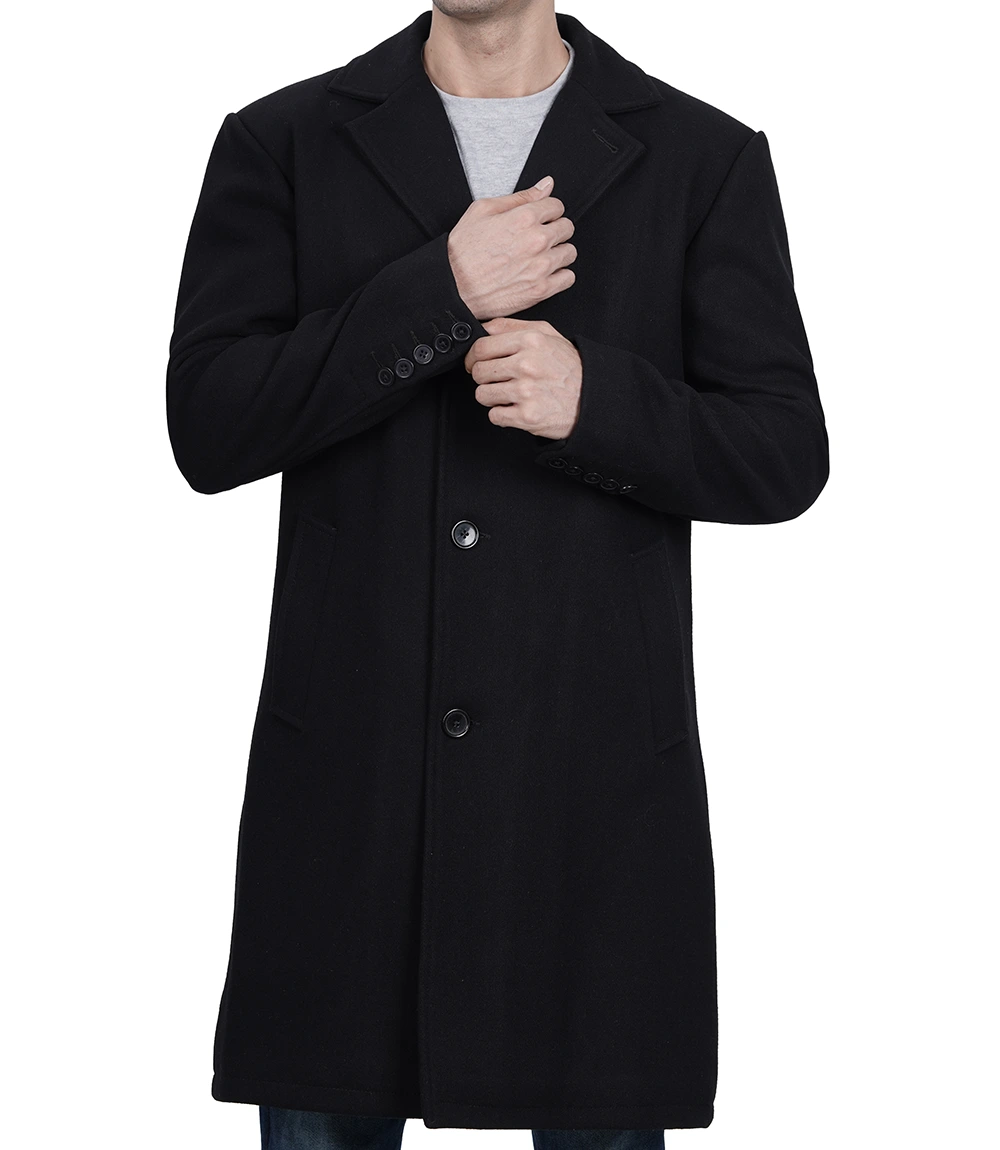 Mens Single Breasted Black Wool Coat - Modern Fit