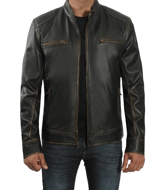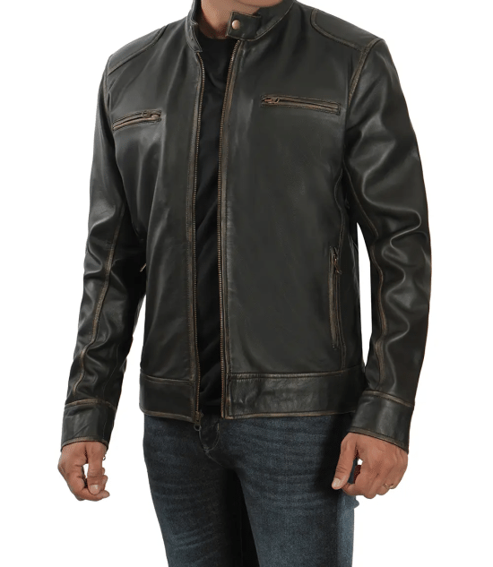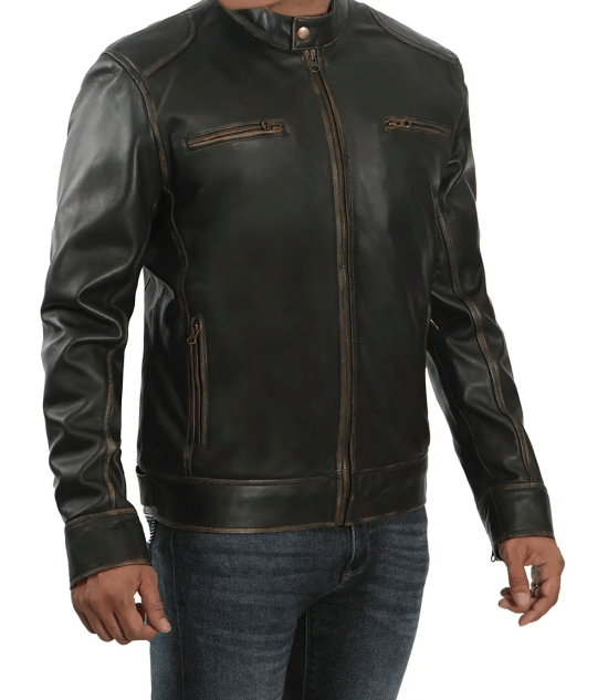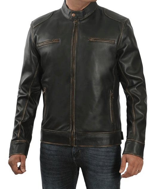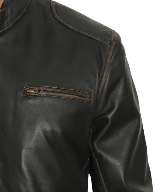 Mens Tall Dark Brown Cafe Racer Leather Jacket