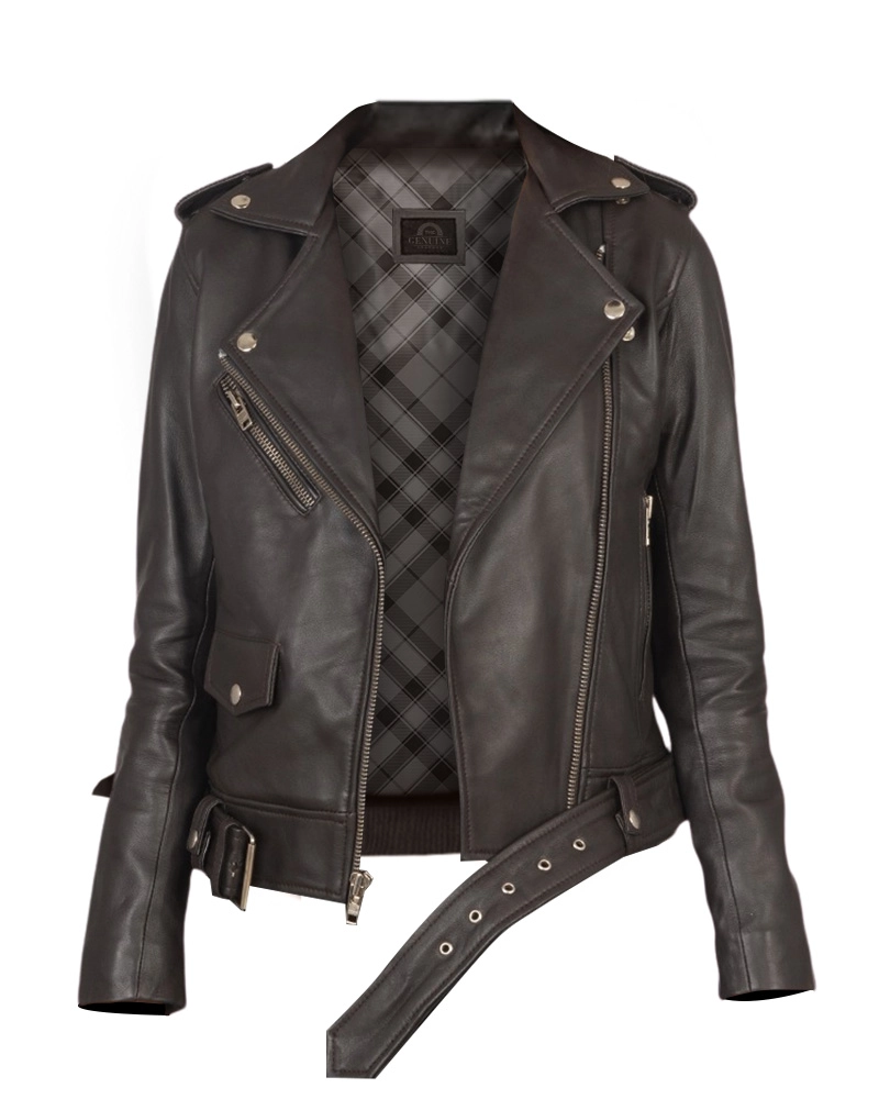 Women Alison Brown Motorcycle Jacket