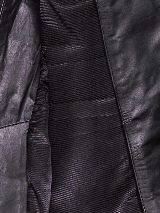 This jacket instantly became my favorite piece in my closet. I love how minimal it looks without the collar it gives it a more polished, feminine style. The leather is soft and lightweight, so I can wear it all day without feeling restricted. I wore it shopping last weekend and a store clerk complimented me on it. It’s perfect for both casual and semi-formal occasions. I’ve been pairing it with slim black pants and boots and it looks amazing.