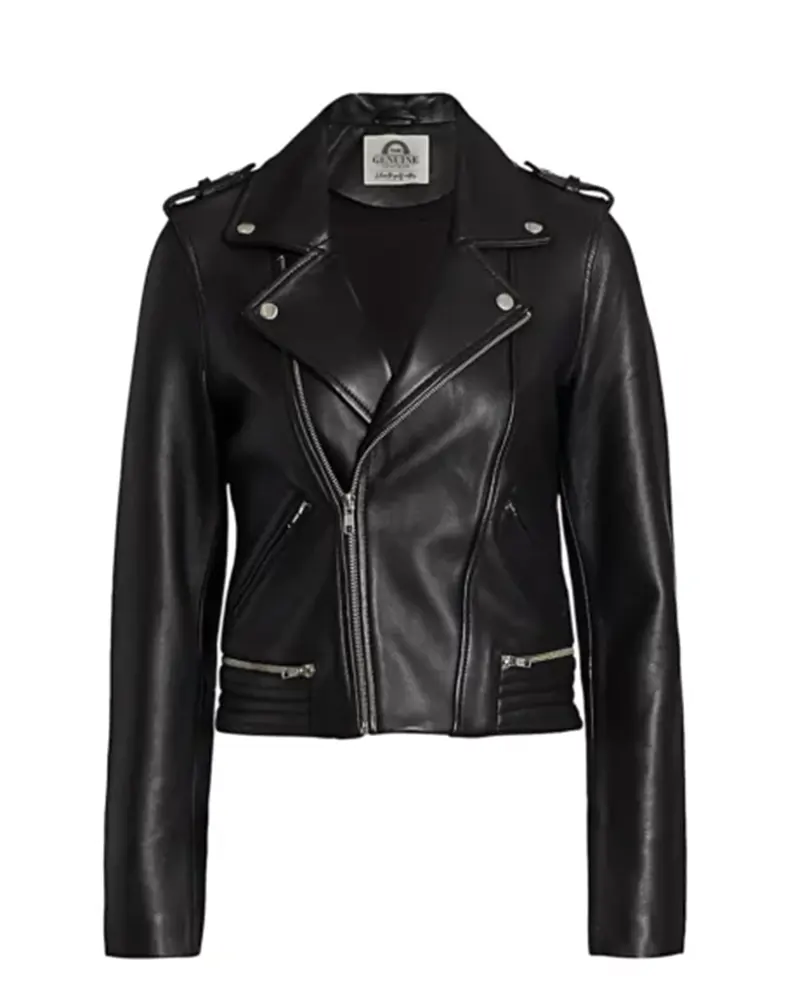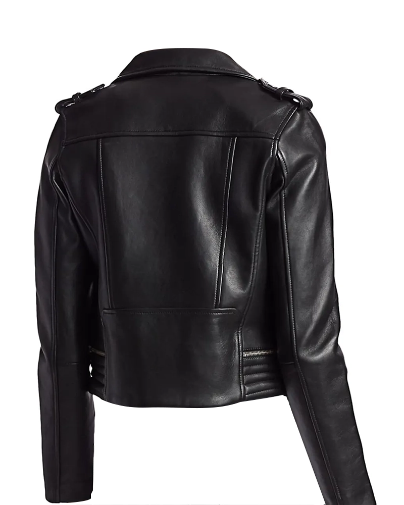 Women Black Moto Biker Leather Jacket