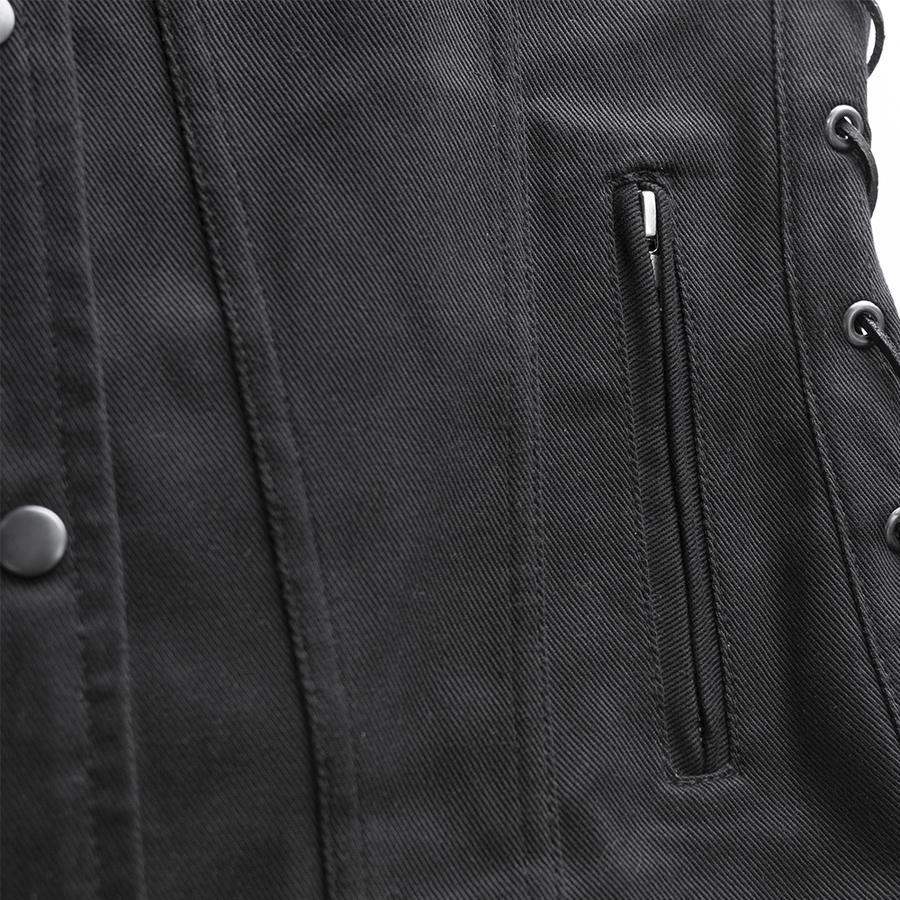 Women Black Motorcycle Twill Vest