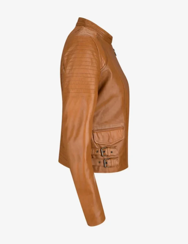 Women Brown Cafe Racer Leather Biker Jacket