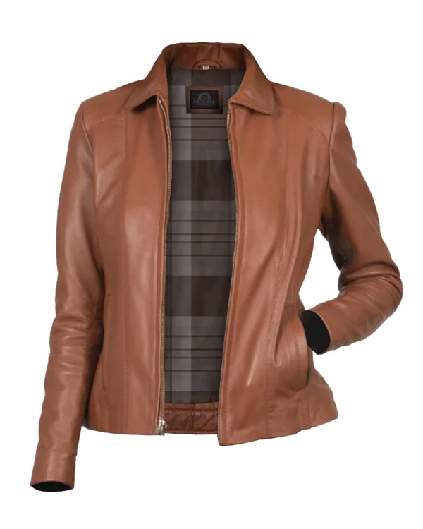 Women Colette Brown Motorcycle Leather Jacket