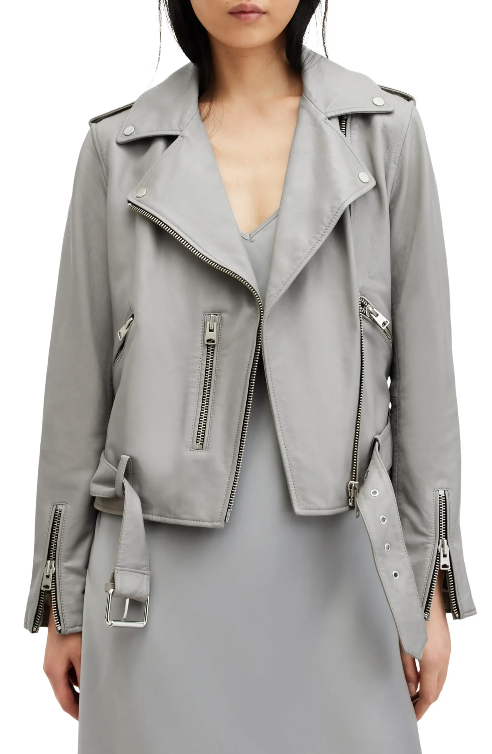 Women Grey Motorcycle Leather Jacket