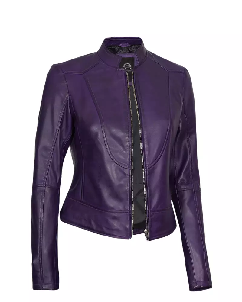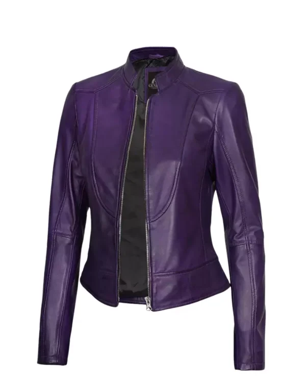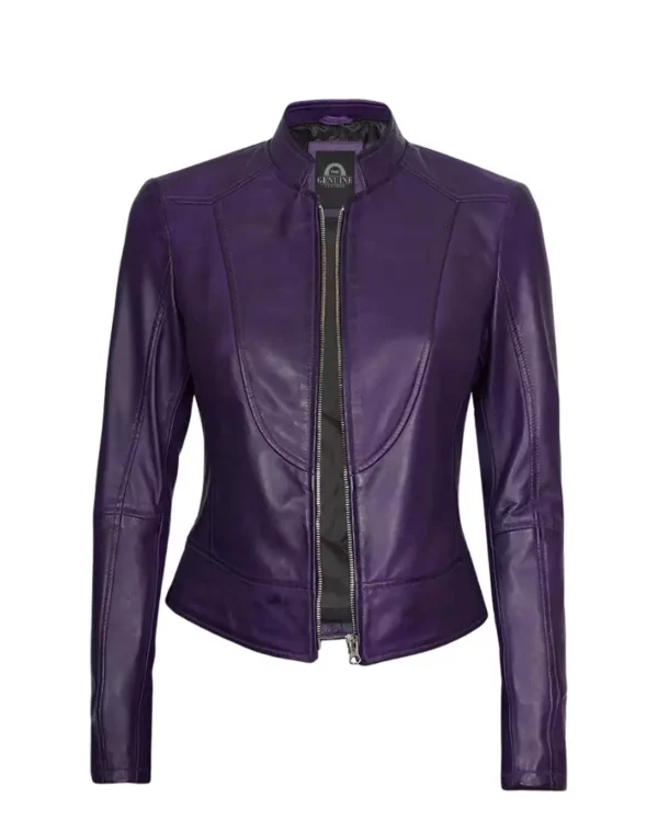 Women Purple Motorcycle Leather Jacket