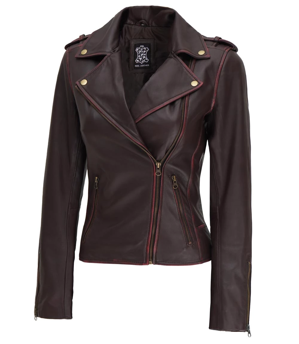 Womens Asymmetrical Moto Jacket Brown Leather Edition