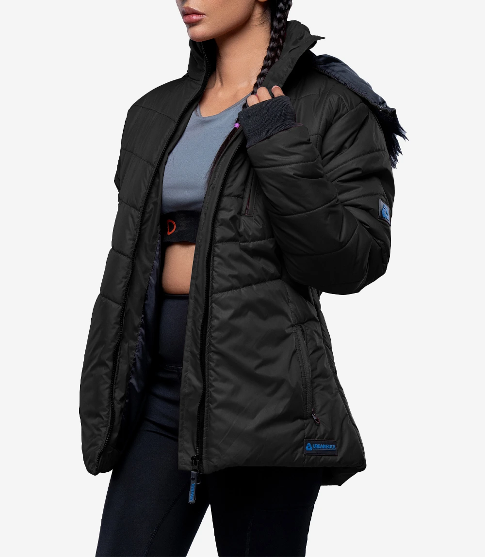 Womens Black Hooded Puffer Jacket