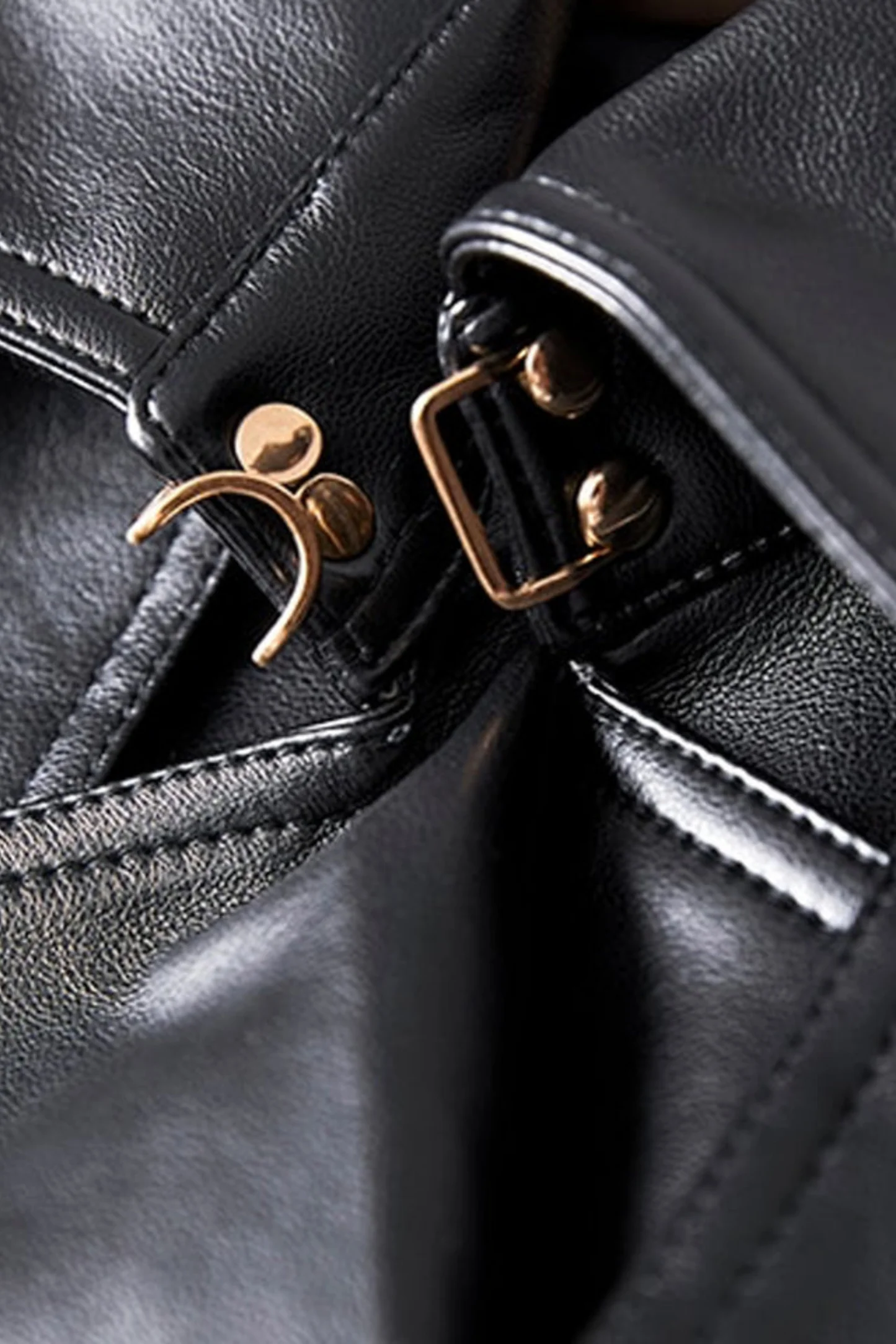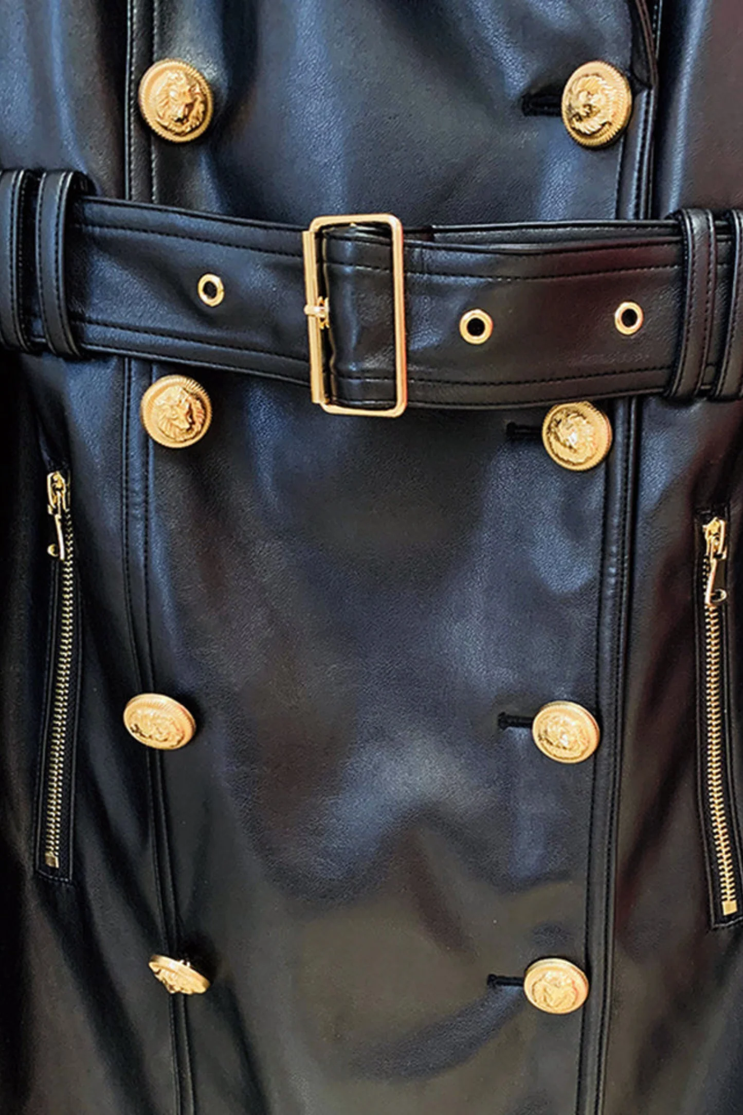 Womens Black Long Leather Trench Coat