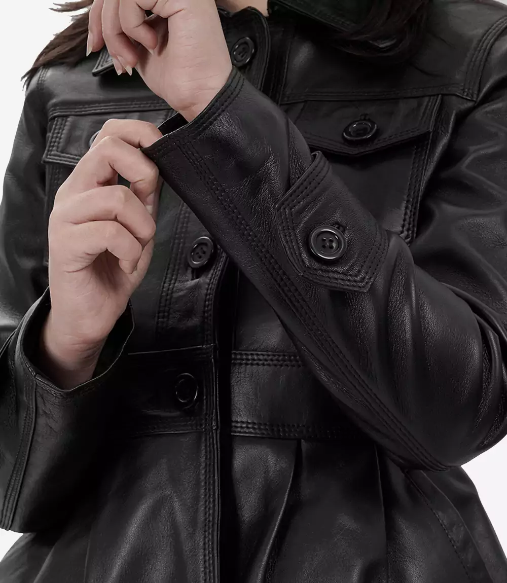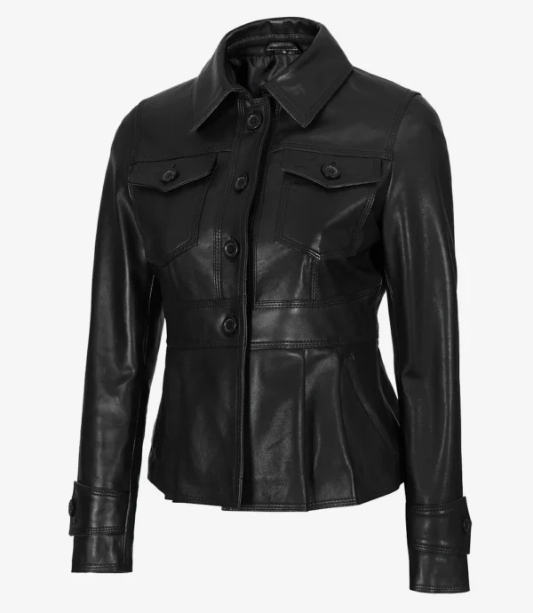 Womens Black Short Body Peplum Leather Jacket