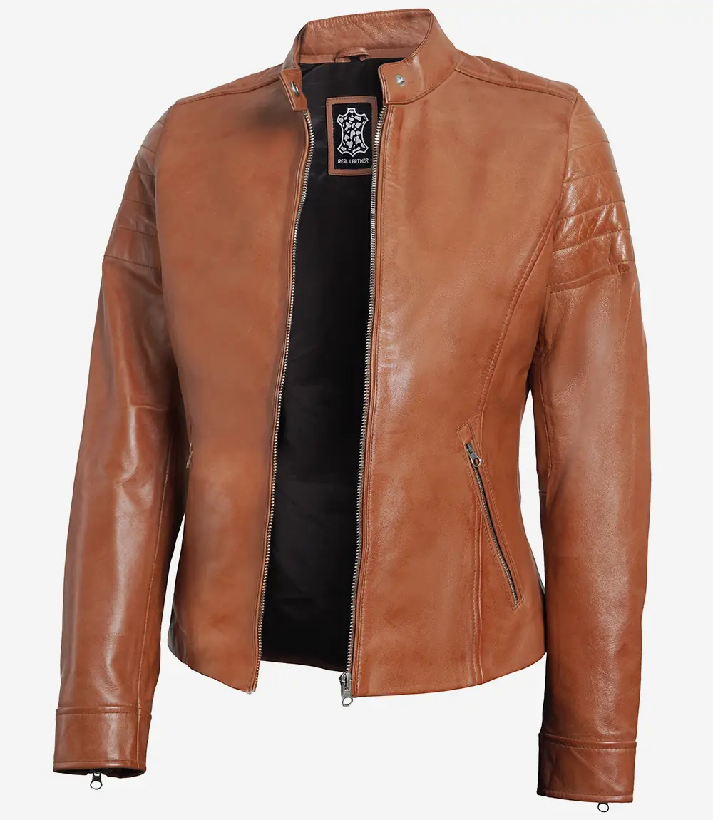 Womens Cafe Racer Tan Leather Jacket