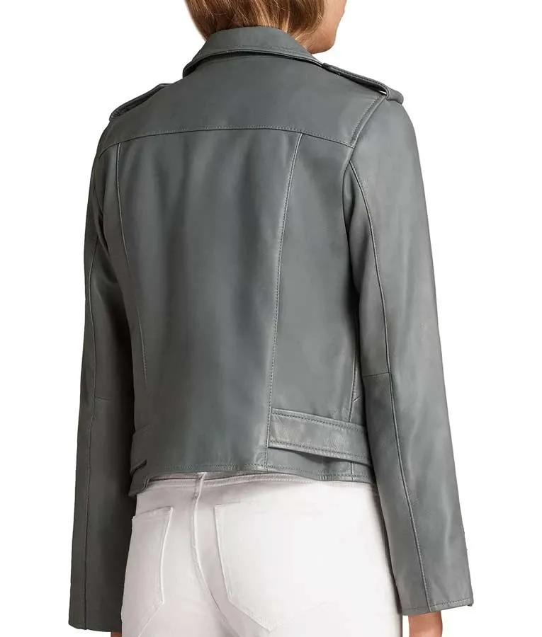 Womens Grey Leather Biker Jacket